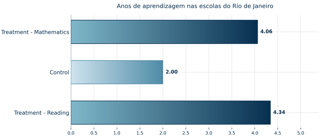 A análise dos dados de avaliação externa (como a Prova Brasil e as avaliações bimestrais da rede) revelou um dado surpreendente: escolas que implementaram integralmente as 23 práticas de gestão alcançaram o equivalente a dois anos a mais de aprendizado para seus alunos, em comparação com escolas que não participaram da intervenção. Com os mesmos professores, alunos e recursos, a diferença foi a gestão.