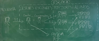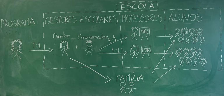 Reuniões frequentes com gestores escolares e acompanhamento presencial.